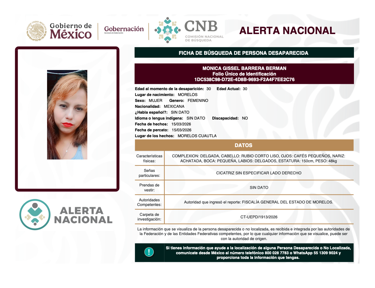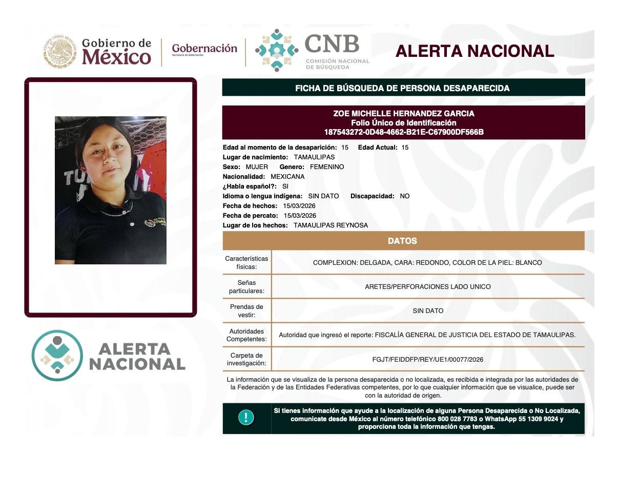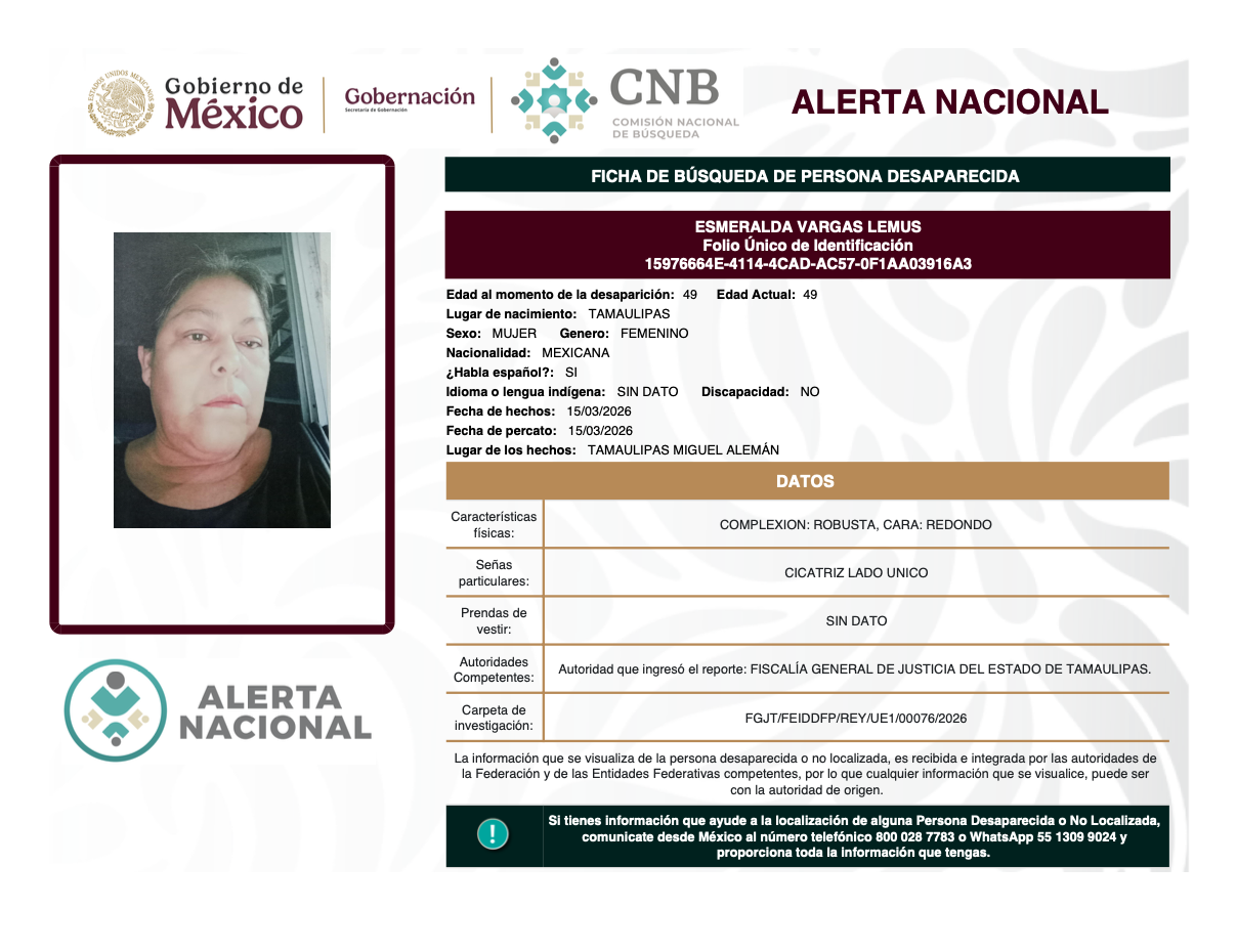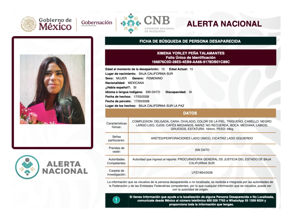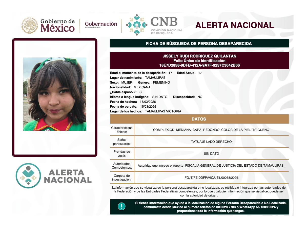 Alerta Nacional de Búsqueda, Localización e Identificación de Personas Desaparecidas y No Localizadas