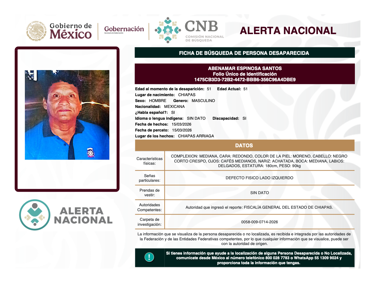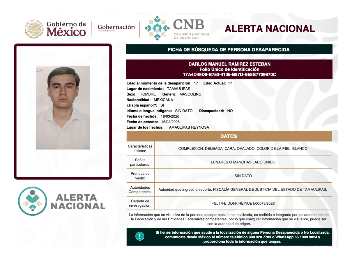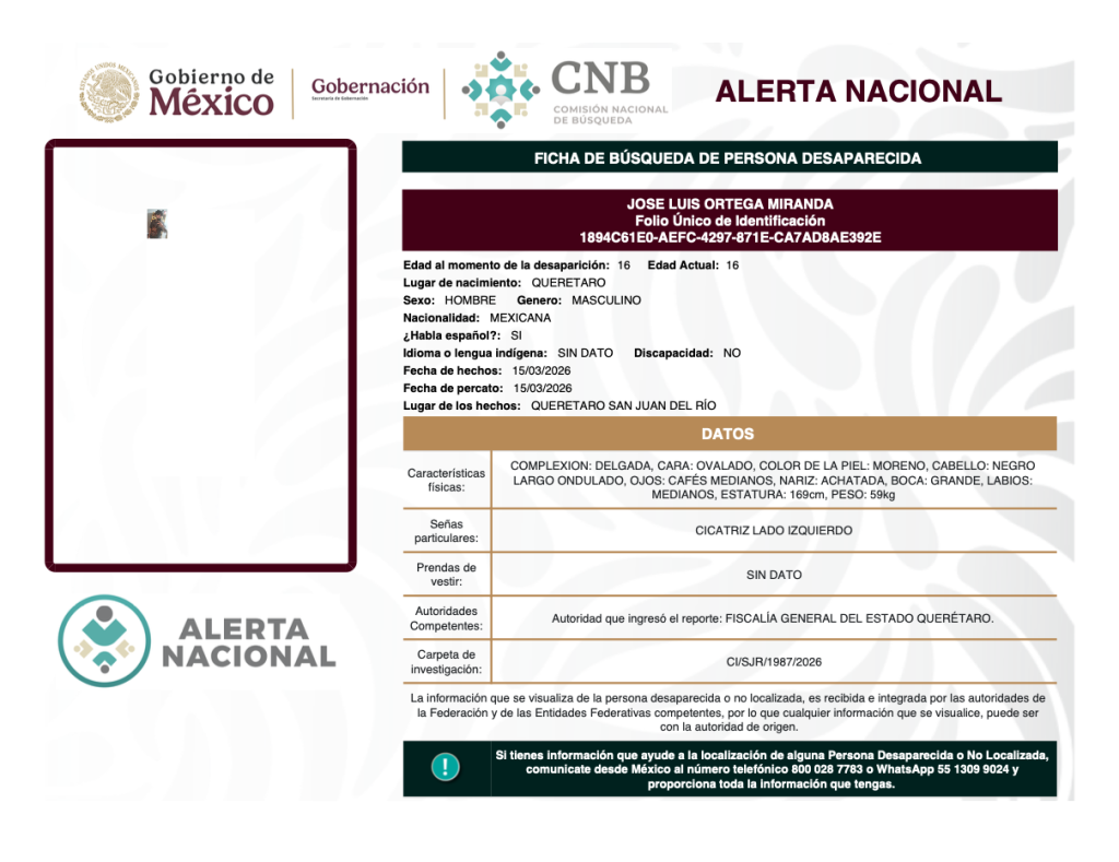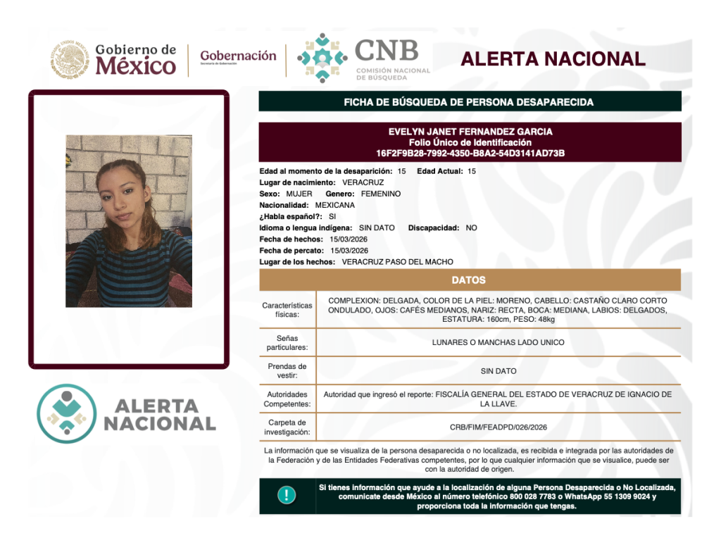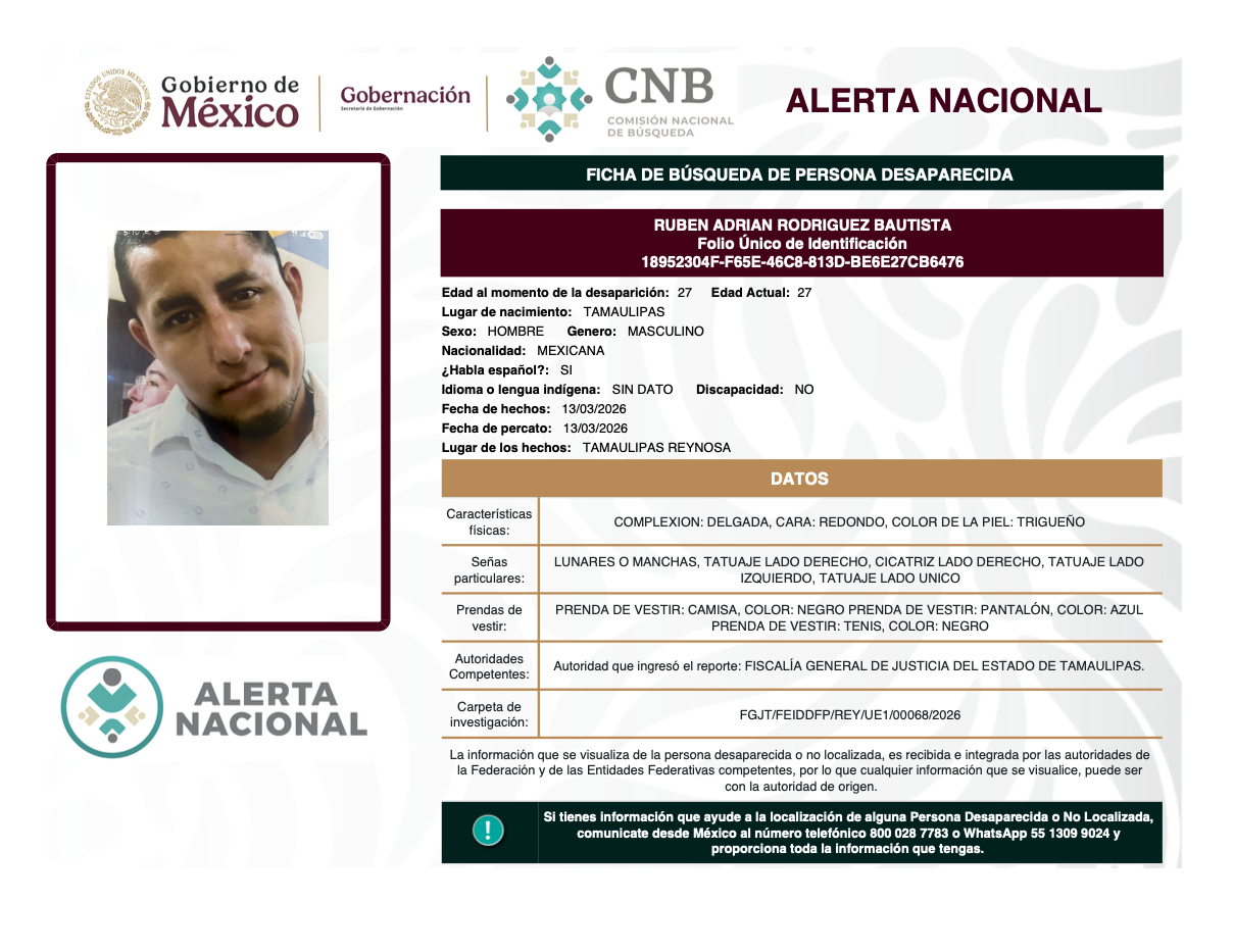 Alerta Nacional de Búsqueda, Localización e Identificación de Personas Desaparecidas y No Localizadas