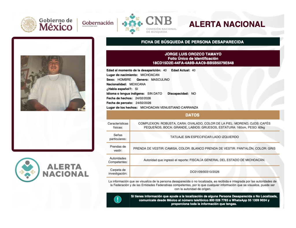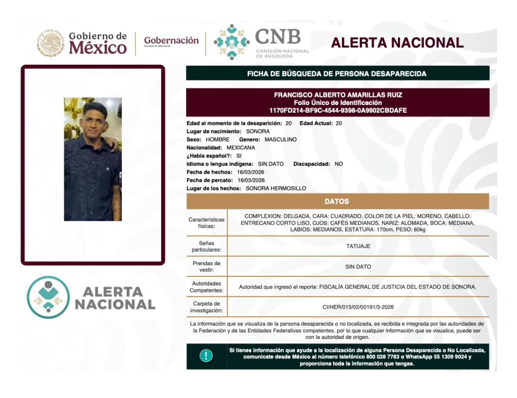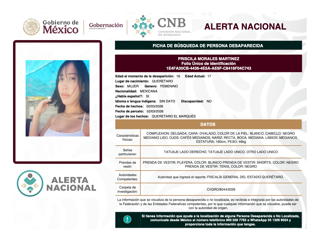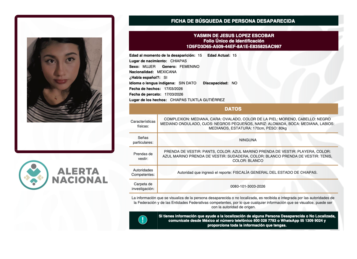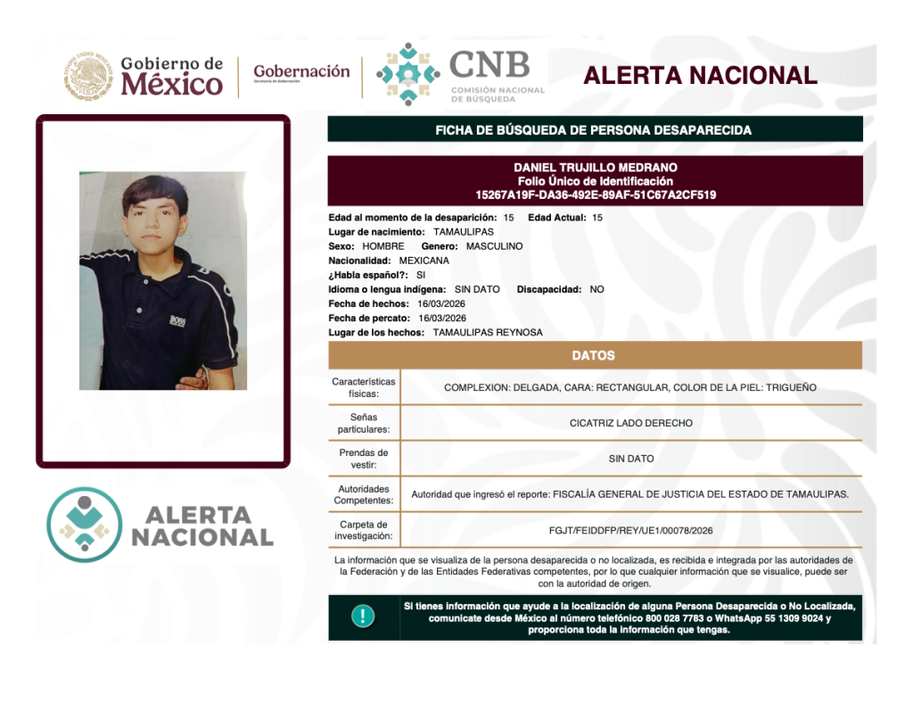 Alerta Nacional de Búsqueda, Localización e Identificación de Personas Desaparecidas y No Localizadas