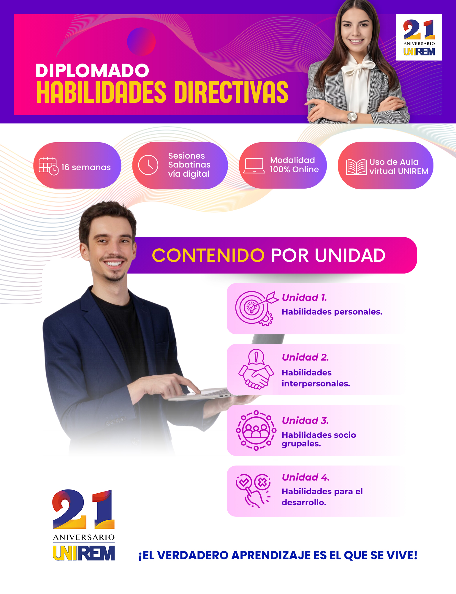 El diplomado en Habilidades Directivas es un programa educativo de educación continua diseñado para fortalecer las capacidades de liderazgo, gestión y dirección de equipos de profesionista, mandos medios y directivos que desean potenciar su desempeño profesional y organizacional.